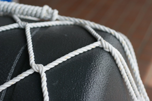 ウレタンコートスチロバール アイテム 2009年09月03日 ウレタンコーティングしたスチロバールです。サイズは#300(600φx1050) 表面は案外硬い感じです。 通常のカバーの商品よりも耐久性はさらに優れていそうです。 今回はさらに耐久性を増すために。 10mmのエステルSロープで編みこみました! これで完璧ですね! この商品は本日西表島へ向けて出荷されます。