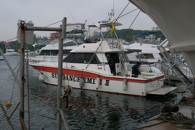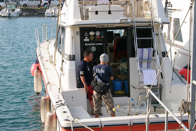 SAM's CUP 2009 参戦記 その1 トローリング 2009年06月04日 今年も黒潮に乗ってカジキがやってきましたネ! 熱い海の男たちは、このシーズンになると毎週のようにボートを出してカジキに追いかけられます。 (いや、トローリングだから追いかけられるで間違いないでしょ~) やはり一人前の海の男になるためにはカジキの1本でも釣り上げねば。 思えば去年のSAM's CUPは散々な結果に終わり、失意の元広島へ帰りました。 しかも帰ってからさらに追い討ちをかけられるという仕打ち。 今年こそはと期するものがあります。 沖縄でカジキを釣るために事前にトレーニングも積んできたことだし、今年こそは何としても釣り上げるぞ。 *************************************** SAM's CUP 2009 参戦記 その1 *************************************** 予行演習代わりに行った土佐清水でのトローリングミッションは、カッパも着替えもお金も持たずに行ってえらい目にあいましたが、今回はそのようなこともなくしっかり準備しての参加になります。 今年は嫁は都合が付かず、僕のみでの参加になりましたが、海の男はちゃんと事前準備ができるからダイジョウブ!(コンタクトレンズを忘れていったのは内緒です。) 朝7時に広島空港で待ち合わせ。そこでキャプテン達と合流。 軽く朝食をとって、飛行機に乗ったら、9時過ぎには既に沖縄に着いていました。 土佐清水港まで車で9時間かけて行ったのは何だったんでしょうね~? ホテルに荷物を預けて、早速ボートへ。 天気はあいにくの曇り空。 エアコンと操舵装置の調子が悪いということで、早速広島から同行したメカニックのマスダさんがチェックをしていました。 何故か手にはビールが握られているメカのマスダさんと同じくメカの金城さん エアコンは取り外して広島へ送り、修理をした上で沖縄へ送り返して取り付けるということになりました。 これで沖縄にいる間中暑いのが確定しました。 操舵装置は油圧のオイルがどこかで漏れているらしく、ヘルムのオイルがまったく無くなっていて舵が効かない状態。散々探し歩いた結果、バルクヘッドを通すところの銅管から漏れている事が判明。直ちに修理をすることになった。 夕方までボートにいてビールを飲みながら雑談をしていたのですが、夕飯を食べにメカさん達だけを残して食事に出かけました。最初に日ということもあって、沖縄料理です。 漁師の店 あぐん いや~、うまかったです。 沖縄は食べ物がイマイチと言われてるそうですが、僕の知る限りでは全然そんなことないです。 この後、飲みまくってホテルへ帰って爆睡。。。 ホテルの部屋へ帰ってからの記憶がございません(汗