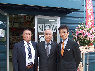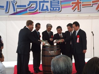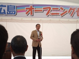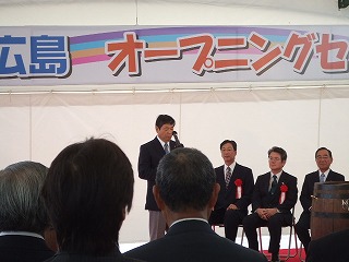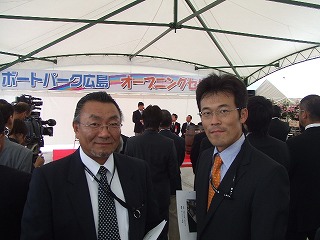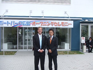 ボートパーク広島、オープニングセレモニー(10/9) イベント 2007年12月31日 10/9はテナントで入っている施設、ボートパーク広島のオープニングセレモニーがありました。 広島県の肝いりの施設なだけに、県知事以下さまざまな方がいらっしゃいました。 藤田雄山広島県知事 当日はあいにくの曇り空でしたが、何とか雨も降らずにちょっと安心しました。 お決まりのテープカットの後、修理ヤード内の特設会場に場所を移して、セレモニーが開始されました。 それにしても結構なテレビカメラの数。。。 注目されてるなあ。。。 広島ボートパーク株式会社 村田社長 いつもお世話になってます! 海洋ジャーナリストの桑名氏 BeFriends代表 小林社長と ワインセレブレーション(というものらしい) 米国ベルポートのジョー・ユベロス氏もいらっしゃってました(一番左の人) この方、奥様と一緒にセレモニー前日にうちのお店にいらっしゃって、うちのお店を褒めてくださいました(^^) お父様がUSOC会長をされている本物のセレブです! TICAジャパンの下倉社長と セレモニーの後、テレビの取材があったり、いろいろなお客様が来たりでてんやわんやしてました。 どーしてもユベロス氏とツーショット写真を撮りたったので、管理棟から出てくるところをお願いしました。 ジョー・ユベロス氏と ユベロス氏とはハグをして別れました。とってもいい人でした(^^)