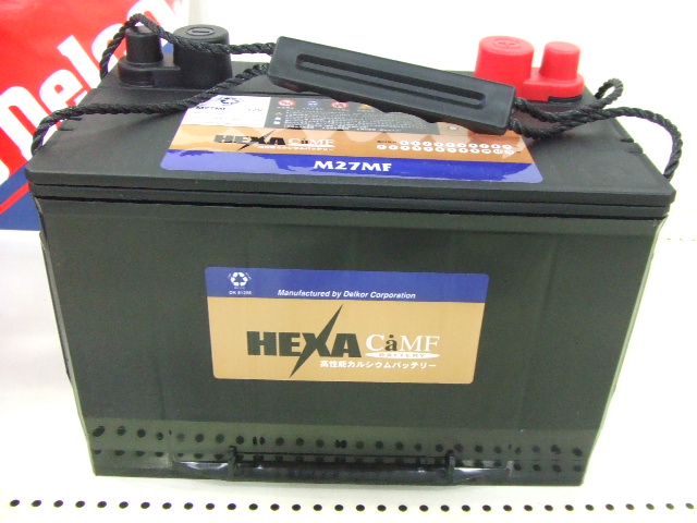 【逸品】HEXA ディープサイクルバッテリー M27MF アイテム 2008年02月18日 ボイジャーディープサイクルバッテリーがリアル店舗でもネットショップでも好評で、2月に入っていきなり売切れてしまいました。 おそらくはメーカーの値上げが2月1日から始まったので、どちらの販売店でも一斉に値上げが行われた為に旧価格のままのうちのお店のものが売れたのだと思います。 本当にお客様は価格に敏感です。 家のお店の在庫分がなくなったので補充しようとしたのですが、仕入れ値が倍近くになりました! さすがにコレではお客様の期待に応えることが出来ないと思いあれこれと探しましたところ、、、 良いもの見つけてしまいました~♪ 表題のHEXAディープサイクルバッテリーM27MFがそれです! どう良いのかと言うと・・・・ まずは画像を見てください! !! !!!!! なんとボイジャーとそっくりです! これはいわゆる中〇製のコピー商品でしょうか? いえいえ、違います。 ラベル以外は ボイジャーとまったく同じものです! つまり、このHEXAバッテリーと言うのは、日本の商社のPB(プライベートブランド)品なんです。 ボイジャーと同じ工場で、ボイジャーとまったく同じ品質で、ボイジャーと同じ商品として造られたものなんです。 ただ最後に貼ったシールが違うだけ・・・。 値段もボイジャーより安く仕入れることが出来ました! さて、問題はいくらのプライスを付けるかなんですが。。。。
